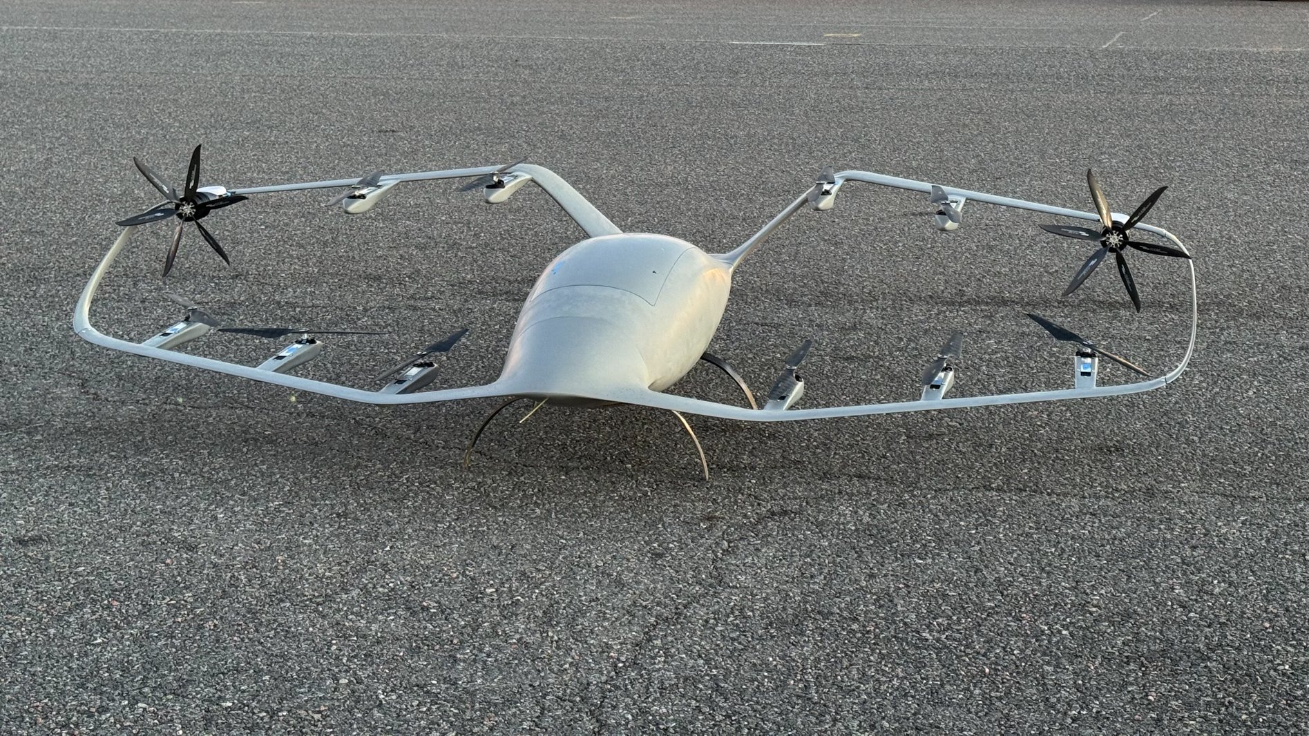 The drone has a wingspan of three meters. It takes off and lands vertically and then transitions to winged flight like an aircraft. Maximum speed is about one hundred fifty kilometers per hour and the maximum flight altitude will be one hundred twenty meters above ground. The drone is approved for flight in varying weather conditions such as cold snow and wind. Flights may be cancelled if limit values are expected to be exceeded. The drone is operated by a pilot located at Skellefteå Droneport. During takeoff and landing in Norsj staff from Arctic Aviation Hub or Bussgods will be on site.